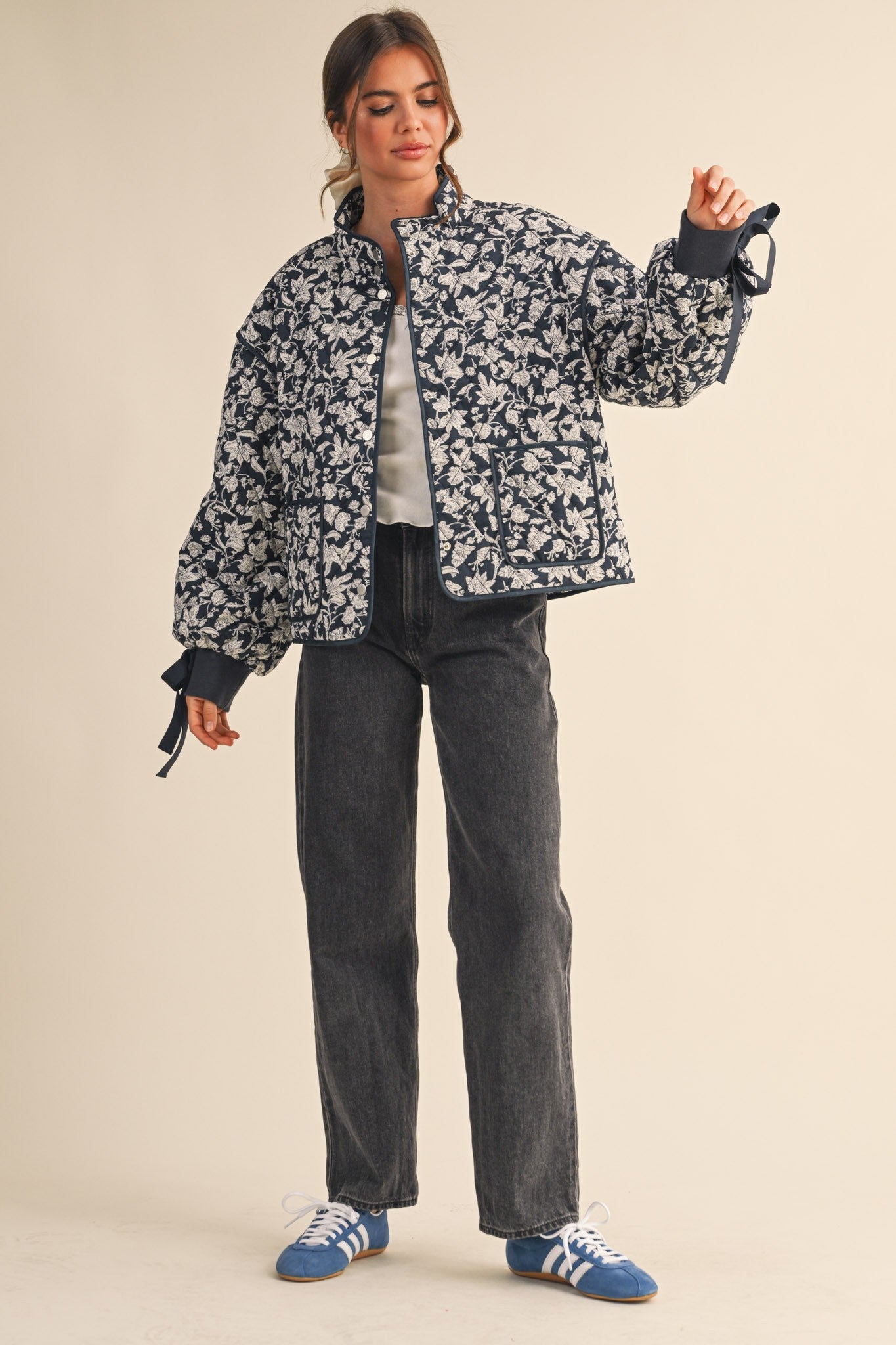 Floral Quilted Jacket (Navy)